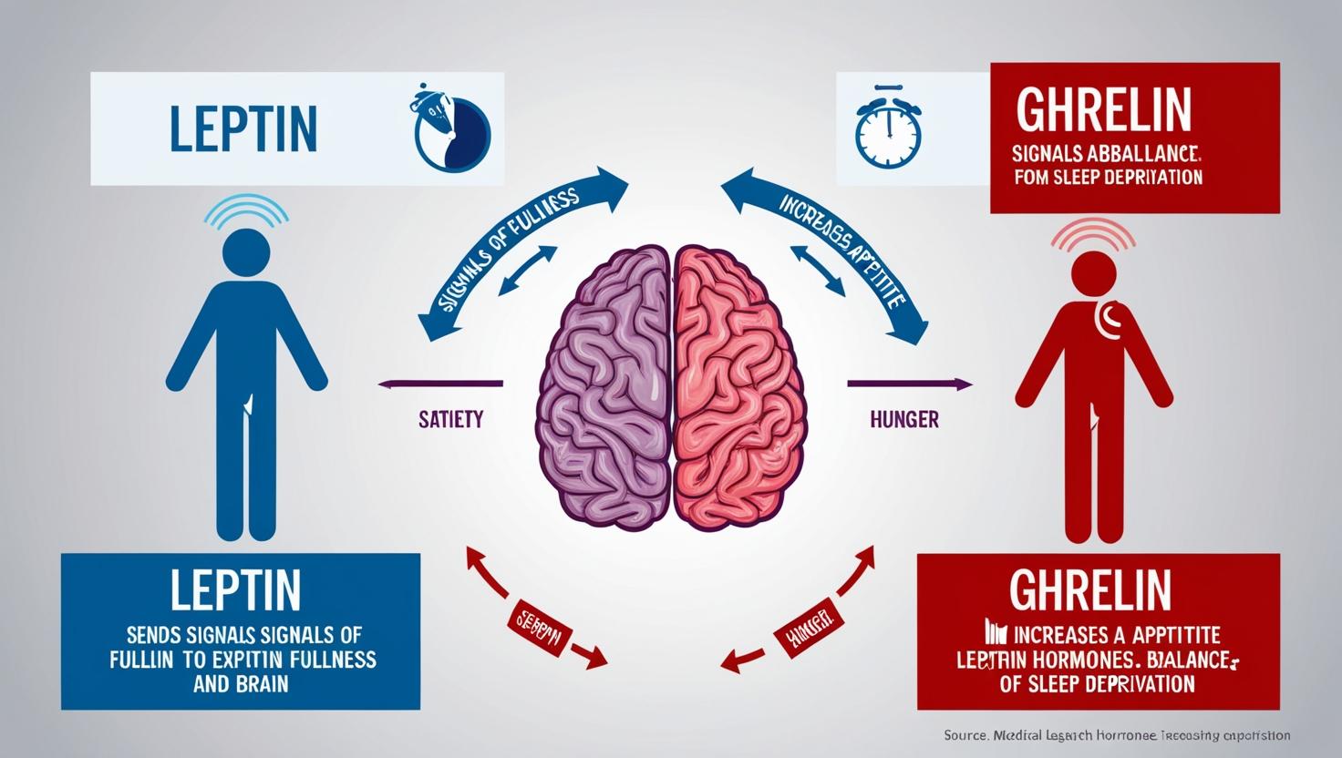 렙틴은 포만감을 알려주는 호르몬, 그렐린은 배고픔을 자극하는 호르몬입니다. 수면 부족 시 이 균형이 무너져요.